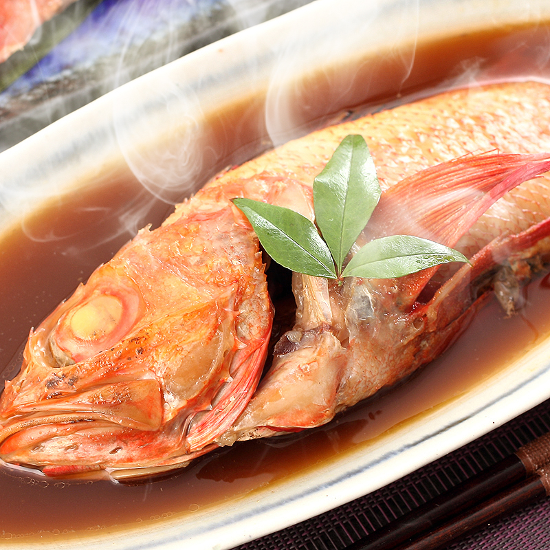 北海道ではお正月に鯛の代わりによくこの「きんき」が食卓に上がります。お祝いの魚というイメージが高く、またその魚体の色も鮮明な赤(特に生魚)です。